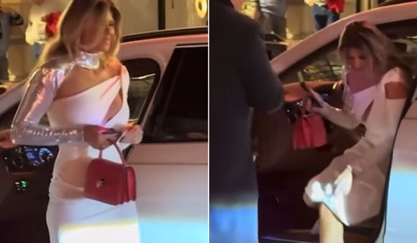 Ona je na sebi imala belu haljinu pripijenu uz telo koja je savršeno istakla njene obline, a koja je imala i proreze na grudima. Takođe, ponela je i skupocenu torbu marke "Bvlgari" koja, prema podacima koji su dostupni na internetu, košta oko 4.000 evra.
