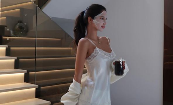 Ćerka Harisa i Meline je u svom domu u Beogradu pozirala na luksuznim stepenicama, u kratkoj svilenoj spavaćici sa čipkom. U prvi plan je istakla svoje duge noge, a na licu je imala masku. U opisu je napisala da tako izgledanju "njena jutra".