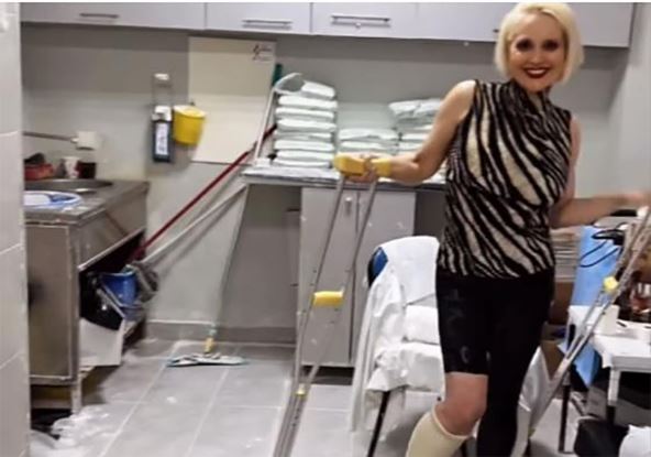 "Evo da vas pozdravim iz gipsare, moram na svakih 7 dana da vidim dokle je stigao oporavak", rekla je ona, a pratioci su bili u šoku zbog njenog ponašanja u bolnici.