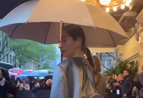 Ona je za prestiđni modni događaj izabrala, kako su mnogi opisivali, "rizičnu" metalik sivu kombinaciju koju potpisuje Thom Browne, koja se sastojala iz uske slip suknje koja se pertlala pozadi, oversized sakoa koji je prebacila preko jednog ramena i neobičnog topa koji je jedva prekrivao njene grudi