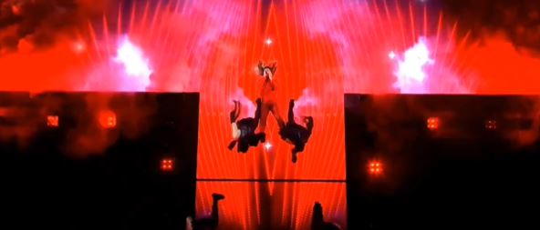 Nastup se potpuno razlikuje od onoga što smo imali prilike da vidimo u Srbiji, te tako srpski predstavnik peva u crvenom kostimu dok oko njega igrači izvode eskplozivnu koreografiju.