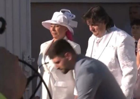 Sada se konačno pojavila i mlada, Zorica Brunclik, koja je umesto venčanice obukla beli sako i pantalone, ali i šešir sa bisernim detaljima.