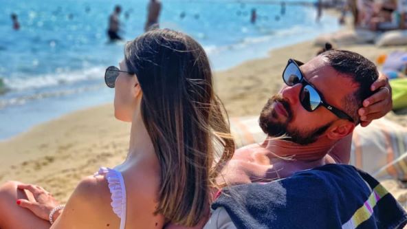 Nemanja Stevanović na klupi pored mora sa suprugom