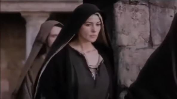 Monika je izabrala veoma nekonvencionalnu haljinu: pravu tuniku u stilu "Đordana Bruna", sa kapuljačom koju nije skidala tokom cele ceremonije.