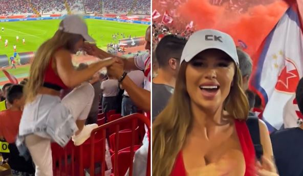 Na Instagramu je osvanuo video na kojem vidimo Staniju u klupskim bojama kako preskače ogradu na tribinama, dok joj pomaže brat Sani, vatreni navijač Crvene Zvezde.
