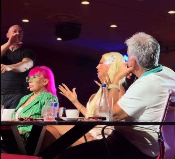 Karleuša je više puta pokušavala da ga prekine, ističući da ne daje prostora ostalim članovima žirija, dok je Desingerica u nekoliko navrata prilazio i grlio je. Pevačica je taj trenutak objavila na mreži "X" uz opis: "Uznemirujući sadržaj".