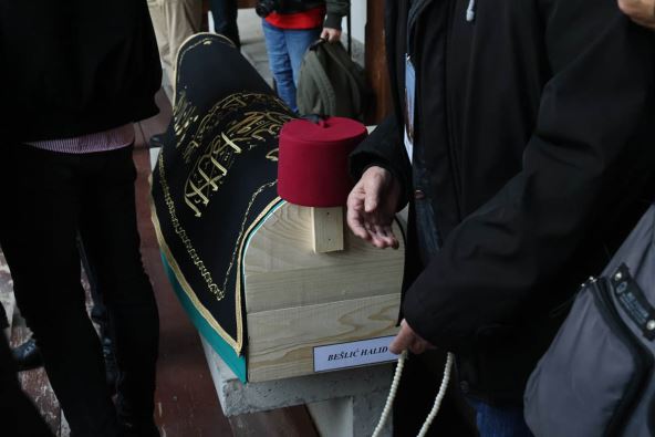 U 13:30 časova počelo je klanjanje namaza Halidu Bešliću u Begovoj džamiji u Sarajevu, a telo Halida Bešlića dovezeno je oko 12:50 časova.
