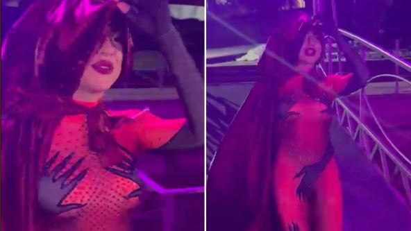 Jovana Jeremić stigla je na svoj 35. rođendan obučena u crveni uski kombinezon sa plaštom. Na licu je imala zanimljivu šminku, a stajling je bio inspirisan svetskom zvezdom Bijonse.
