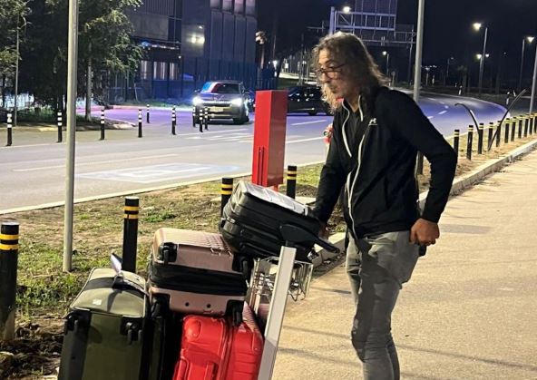 On je uslikan na beogradskom aerodromu Nikola Tesla kako se nakon leta vraća u svoj dom u prestonici, a okupljenim medijima nije hteo da kaže ni reč o Ani Nikolić, kao ni da odgovori na optužbe da joj je ukrao novac.