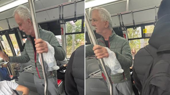 Jedan od njih je i glumac Branko Babović, najpoznatiji po ulozi Đuro Palice u seriji "Kursadžije", kog smo danas krišom snimili u autobusu.