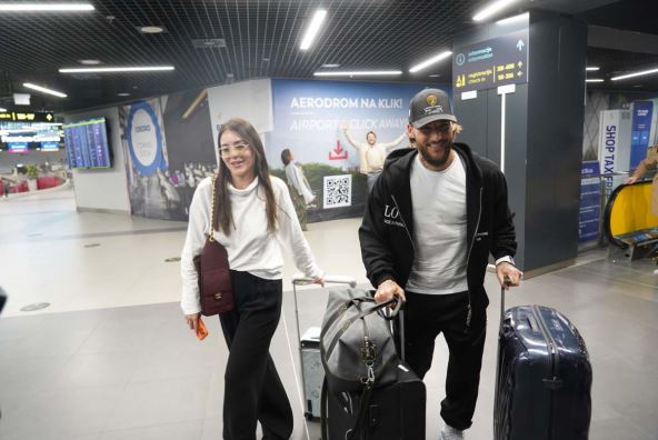 Njih dvoje su vukli kofere, a Anastasija nije skidala osmeh sa lica.