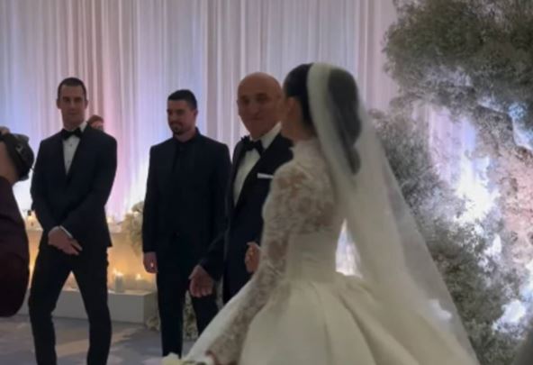 Prve fotografije sa ceremonije pokazuju Tamaru u ekstravagantnoj beloj venčanici, čipkanoj u gornjem delu, sa dugim belim velom na glavi, dok ju je otac pod ruku pratio do mladoženje.Njihov emotivni zagrljaj bio je trenutak koji je mnoge rasplakao.