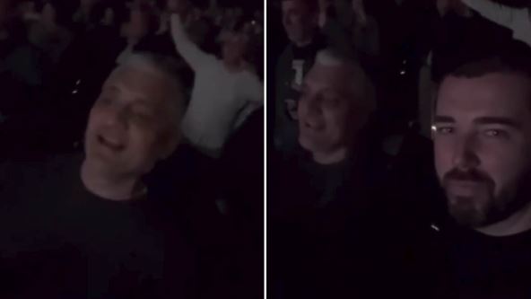 Sve vreme je pevao u zanosu i igrao, dok ga je prijatelj Aleksandar Kos snimao, očigledno podjednako oduševljen nastupom.