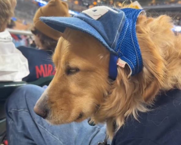 U poslednjim sekundama snimka publika se smeje dok zlatni retriver lagano se spušta na sedište usred utakmice i lagano kreće da spava, potpuno opušten, kao da je u svom dnevnom boravku.