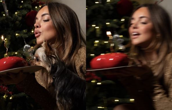 Za ovu priliku Sofija je odabrala usku, svetlucavu haljinu i visoke potpetice, dok je pozirala pored novogodišnje jelke i gasila svećice na torti u obliku srca.
