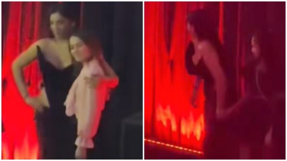 Dok je Aleksandra Mladenović pevala pesmu "Zavede me majko momak loš", Nadica je u elegantnoj haljini i na visokim štiklama, vesela i nasmejana, zaigrala sa tri devojčice iza bine, a zatim se i fotografisala sa njima.