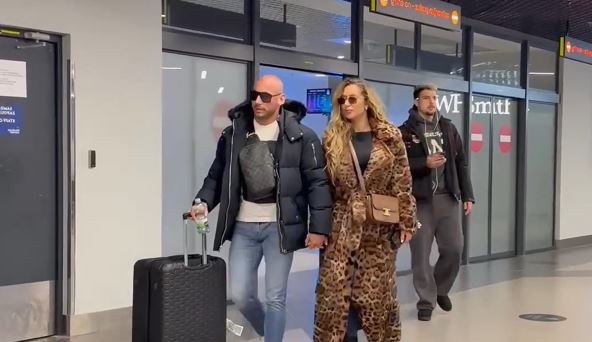 Ona je na aerodrom stigla u luksuznoj budni sa leopard printom, crnim čizmama i tobricom koja se savršeno slagala sa njenim autfitom.