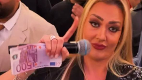 Pevačica je u rukama držala novčanice od 500 i 50 evra, kao i ogromnu flašu vodke, a pohvalila se da je od domaćina dobila zlato. Očekivano je da će posle ovog nastupa poželeti još koji sličan angažman, budući da je za kratko vreme zgrnula ogromnu lovu.