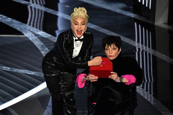 Tokom čitanja nominacija, Lajza je imala kartice sa tekstom, ali je deo najave pratila sa telepromptera. U jednom trenutku, delovalo je da je izgubila nit, nakon čega joj se Gaga obratila rečima koje su mnogi doživeli kao dirljive.