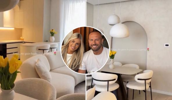 Njegova trudna supruga Ivona pokazala je nekretninu, u kojoj dominiraju prirodni tonovi. U dnevnoj sobi su dominantne bež sobe, a kontrastu doprinosi cveće koje je postavila po stanu.