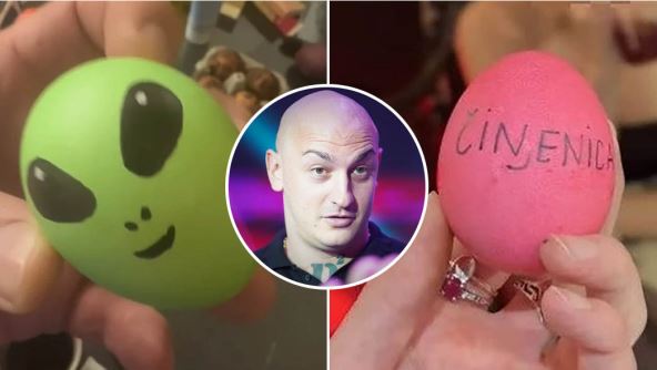 Vila je na jajetu ispisala reči "jaje" i "činjenica", aludirajući na viralan intervju repera Mihajla Veruovića Vojaža u kom govori da je činjenica da voli nakit i religiju, pa otuda nosi predimenzionirane lance sa hrišćanskim simbolima.