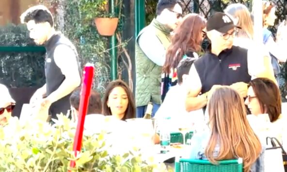 Kasnije je ipak stigla da se sa ostalim gostima uputi u Portofino, pa je sada uhvaćena i dok sedi sa ostalim svatovima u jednom restoranu.