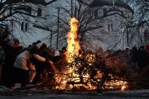 Zapaljen osveštani badnjak pred Hramom svetog Save