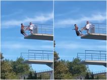 SPASILAC BRUTALNO ŠUTNUO MLADIĆA SA SKAKAONICE OD 10 METARA! Jeziv snimak - iznerviralo ga što ne sme da skoči?! (VIDEO)