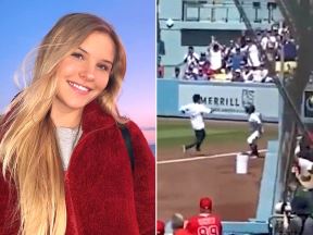 LEPOTICA USPELA ŠTO OBEZBEĐENJE NIJE: Navijač utrčao na teren, plavuša ga bacila preko ograde! (VIDEO)