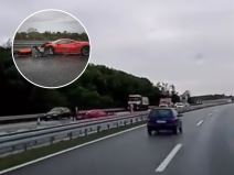 MISTERIJA UNIŠTENOG CRVENOG "FERARIJA" NA AUTO-PUTU: Vozači u Srbiji snimili užasan prizor RAZORENIH skupocenih kola!