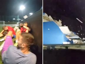URAGANSKI UDARI CEPAJU BALON ZA MALI FUDBAL KAO PAPIR! Dramatičan snimak iz Niša, deca se sklonila u zaklon! (VIDEO)