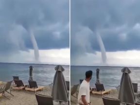 PRVI SNIMAK STRAVIČNOG TORNADA NA HALKIDIKIJU! Ima teško povređenih, lete ležaljke, pustoš na plaži (VIDEO)