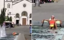 ŽENA SE SKINULA U KUPAĆI I LEGLA U FONTANU ISPRED HRAMA SVETOG SAVE! Beograđani u neverici gledaju ovaj prizor (FOTO)