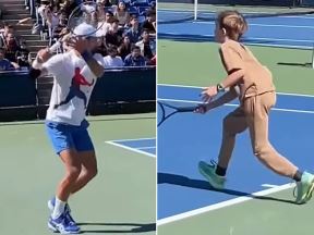SCENA ZA PAMĆENJE, NOVAK I STEFAN TRENIRAJU JEDAN PORED DRUGOG! Dva terena i potezi koji pokazuju kako ga sin KOPIRA