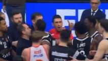 Frka Partizanovog košarkaša i trenera Olimpijakosa na terenu: Pogledajte sukob u Areni, razdvajali ih!