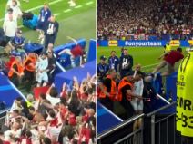 HAOS NA EURU, NAVIJAČ SKOČIO NA RONALDA SA TRIBINA: Bukvalno poleteo na Kristijana, obezbeđenje u šoku! (VIDEO)