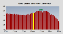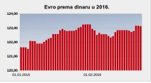 Dinar raste "sam do sebe" - 123,56 za 1€