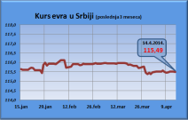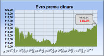 Dinar kod kote 116, potrošeno pola milijarde evra