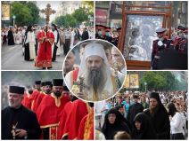 PATRIJARH ISPOD BALDAHINA, BOGORODICA TROJERUČICA NA ČELU: Spasovdanska litija u fotografijama
