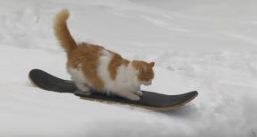 Vožnja koja je osvojila sve: Mačak Tedi borduje po snegu! (VIDEO)