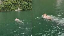 "Malo tamo, malo vamo, njemu ne treba pasoš": Tarski meda plivao Drinom, pa naleteo na njihov brodić (Video)