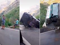 PRIZOR DA ZASTANE SRCE: Jeziv snimak šlepera kako VISI sa ivice kolovoza iznad litica kanjona Morače (VIDEO)