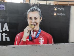 DRUGO OLIMPIJSKO ZLATO, PA MURAL U BEOGRADU: Komšije nacrtale Milicu Mandić na zidiću u naselju! (FOTO)
