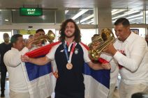 SRPSKA TROBOJKA, "MARŠ NA DRINU" I MEDALJA OKO VRATA: Srbija dočekala svog Zuraba uz trubače, on blistao! (VIDEO)