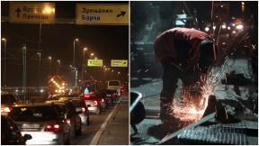 HAOS NA PANČEVAČKOM MOSTU: Zastoj duž cele trake, zbog radova varnice na sve strane (FOTO)
