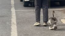 Izveo u šetnju gusku koja nosi patofne: Urnebesna scena na ulici, svi gledaju u krzno na njenim nogama