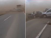 ZBOG PEŠČANE OLUJE NASTAO LANČANI SUDAR OD 14 VOZILA U SUBOTICI! Nije se video prst pred okom (VIDEO)