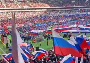 HLEBA I IGARA! PUTIN SLAVI GODIŠNJICU RATA NA PUNOM STADIONU: Ljudi došli iz cele Rusije, dobili kafu i kobasice VIDEO