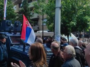 OKAČILI SRPSKU ZASTAVU NA OKLOPNO VOZILO KOSOVSKE POLICIJE! Srbi u Zvečanu uzvikuju "idite, idite" i "ovo je Srbija"