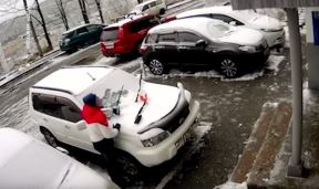 SPEKTAKULARNO: RUS IZBEGAO JEZIVU SMRT! Na njegov automobil palo DVE TONE betonskog zida sa vrha zgrade! (VIDEO)